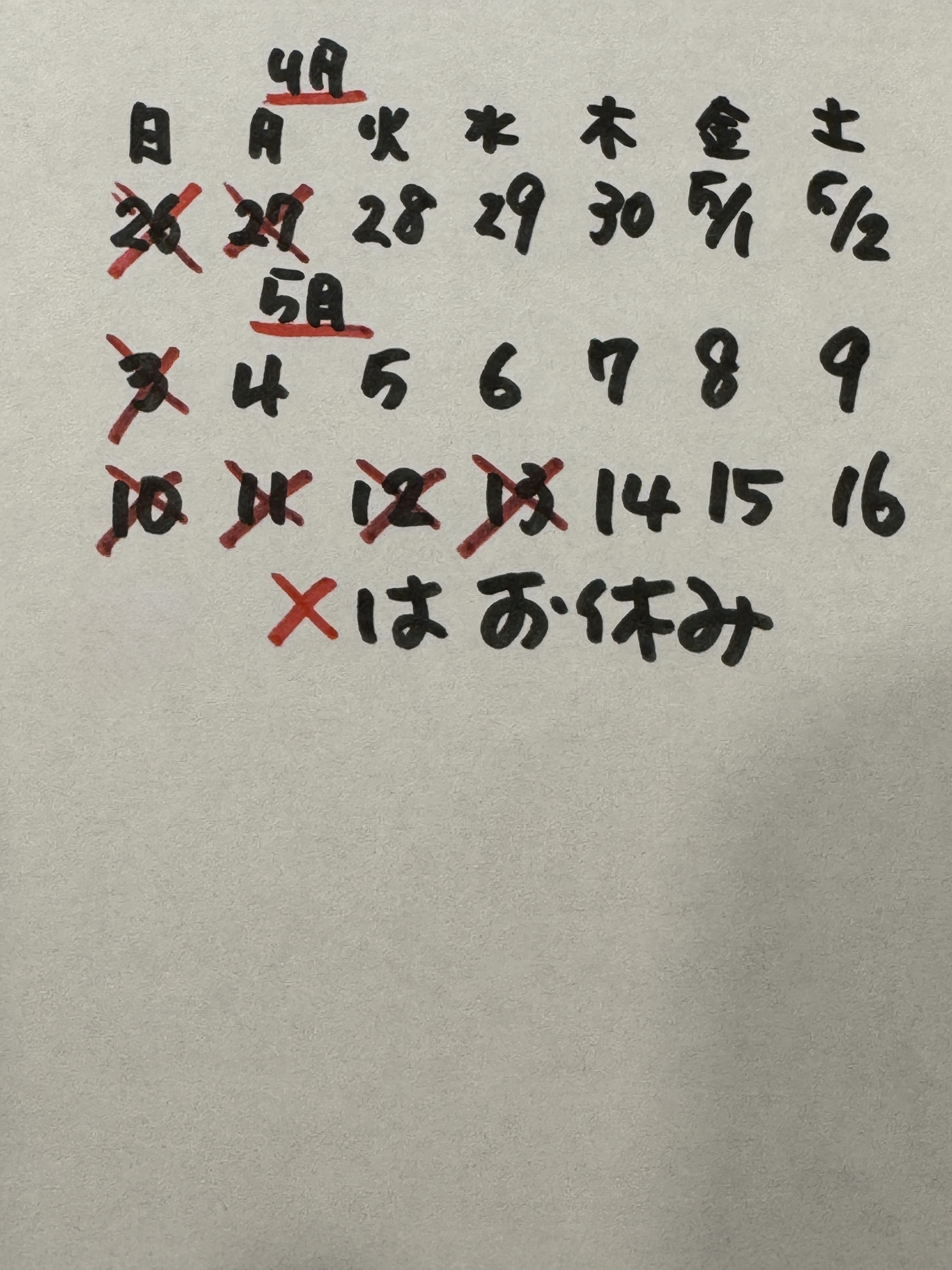 2026年ゴールデンウィーク営業スケジュール
